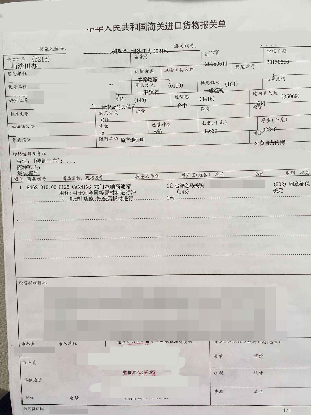 【文章標題】:龍門雙軸高速精密沖床進口報關手續及案例【進口知識】 http://www.bwcailiao.cn/lm1/65.html 轉載請注明出處