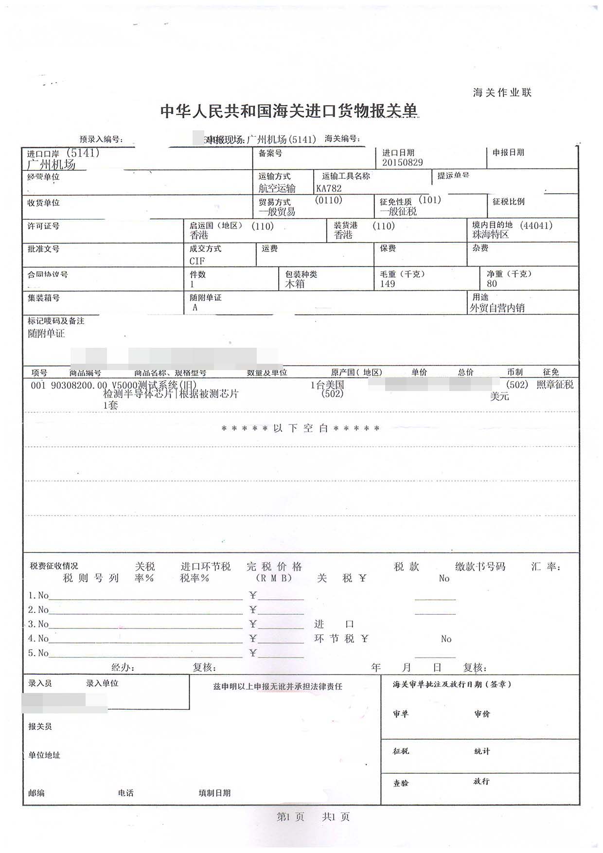 四、測(cè)試機(jī)(舊)進(jìn)口報(bào)關(guān)案例展示