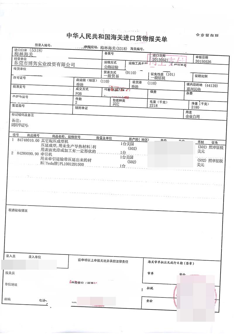 三、成型機(jī)進(jìn)口報(bào)關(guān)案例展示