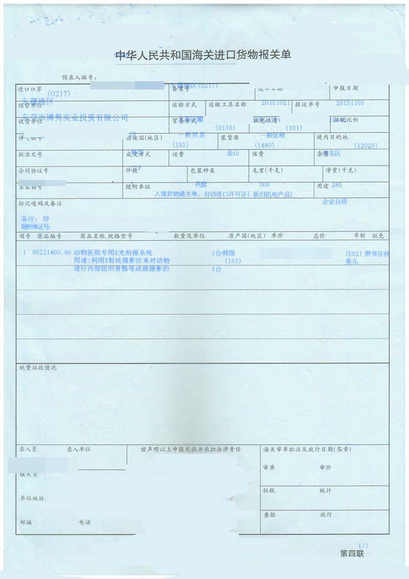 三、動物醫院用設備進口報關案例展示