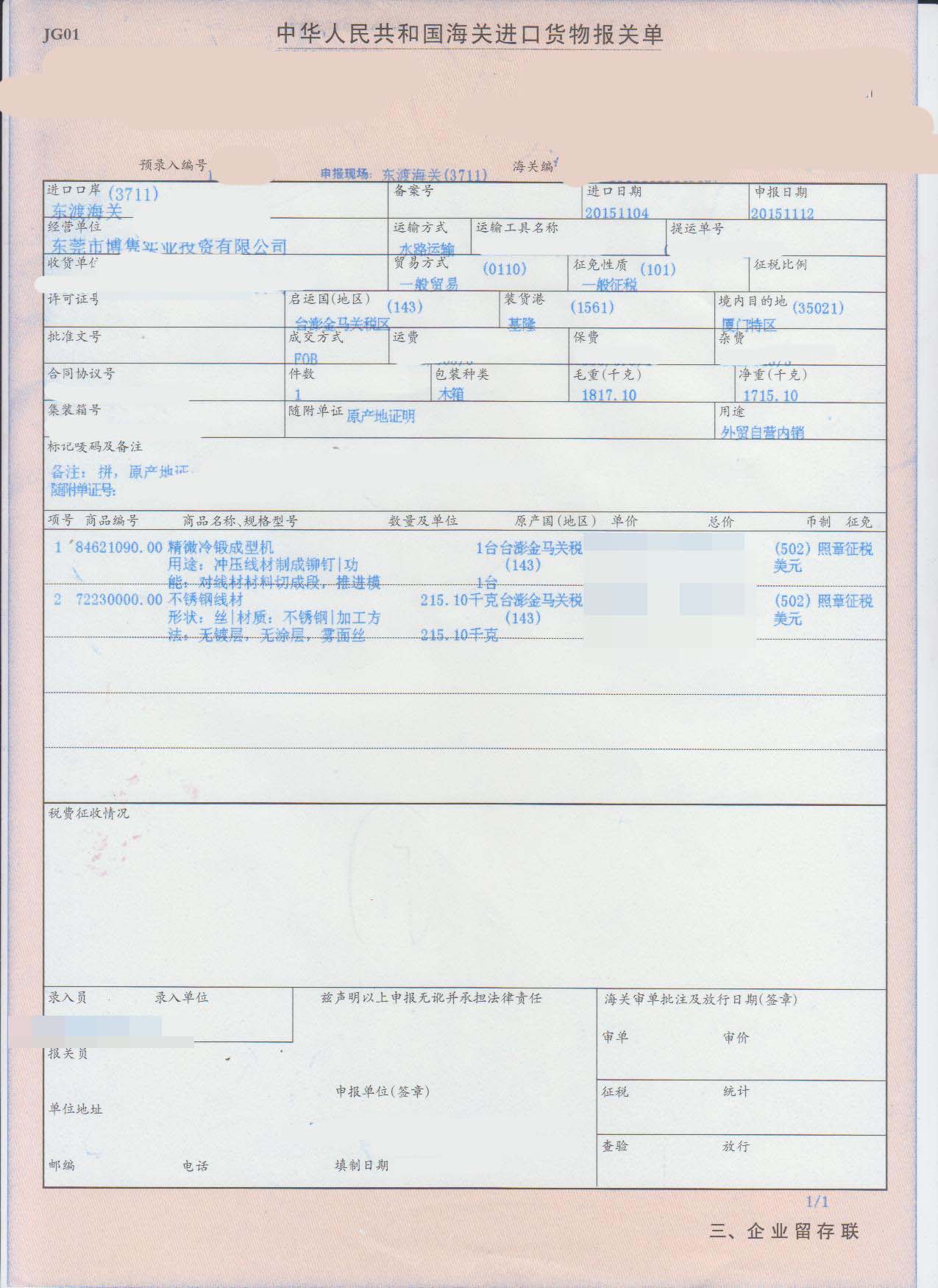 【文章標題】:精微冷鍛成型機進口報關手續及案例【建議收藏】 http://www.bwcailiao.cn/lm9/72.html 轉載請注明出處